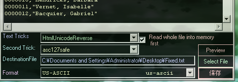 File Converting As an example of the use of the use of the File converter, here is a case I used it in recently: The task I had was to convert a CSV file I downloaded from the internet into a format suitable for the old DOS program Dbase III, ![]() Below is the file as it appeared in notepad, There are several problems with this file:- 1. The name on line 98344 has MojiBake symbol corruption - there is a problem with the file format 2. The name on line 98346 has foreign symbols encoded in HTML format 3. Dbase is likely to have issues with nonstandard Ascii characters, so I want to convert everything to safe characters ![]() Using the file converter, I selected the source file. at first I assumed the file was Ansi, or UTF-8, however the preview screen still showed corrupt symbols. However UTF-7 resolved the problem, so this must be the soruce format. ![]() So now we can read the format OK, we need to convert it to a format Dbase will like First we need to remove the "ô" entries and replace them with their equivalent symbols, the texttrick "HtmlUnicodeReverse" will do this Then we want to replace all ascii chars>127 with their closest A-Z equivalent, "asci127safe" will perform this conversion We can preview the conversions using the "Preview TextTricks" tab. Finally, we want to output the file in a simple encoding as we have now removed all the troublesome characters, so selecting "US-ASCII" seems best. ![]() Now everything is set up we can save the file The final file can be seen below, with all its problems fixed ![]() |